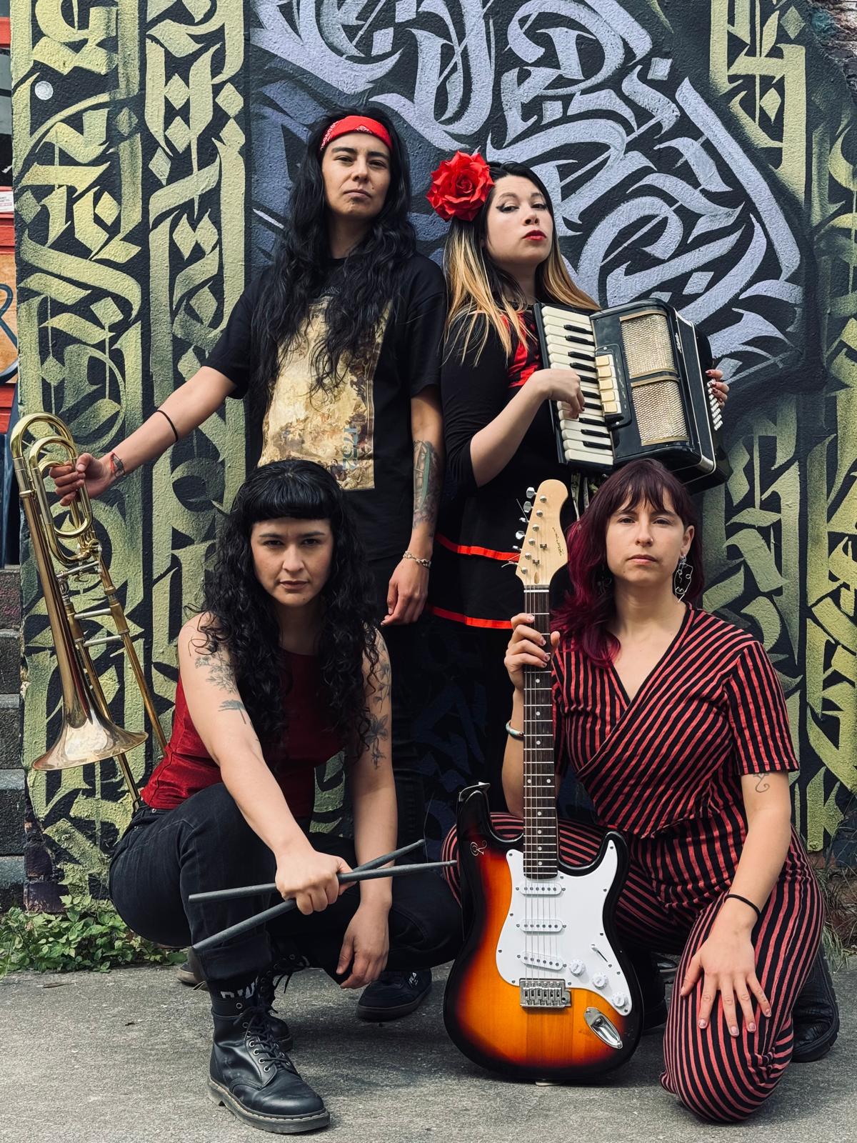 Las Perras del Infierno sind Cumbia Ska, wilde Energie und kompromisslose Energie. Mit der Kraft des Feuers bringen Las Perras del Infierno den Klang Lateinamerikas direkt nach Deutschland. Diese vierköpfige Frauenband hat es sich zur Aufgabe gemacht, die reiche Musik- und Widerstandskultur Lateinamerikas hierzulande zu verankern – mit jeder Show schaffen sie neue Brücken zwischen den Kulturen. Ihre Auftritte sind ein Ganzkörpererlebnis: schweißtreibend, ekstatisch, rebellisch und unvergesslich. Die wilden Musikerinnen liefern einen einzigartigen Mix aus tanzbaren Rhythmen, scharfer Gesellschaftskritik und rohen Emotionen.